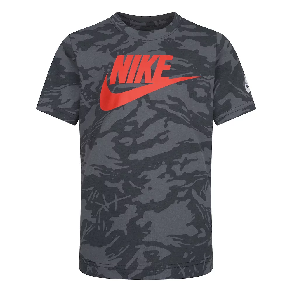 He’ll love his look in this boys’ camo print Futura logo graphic tee from Nike.