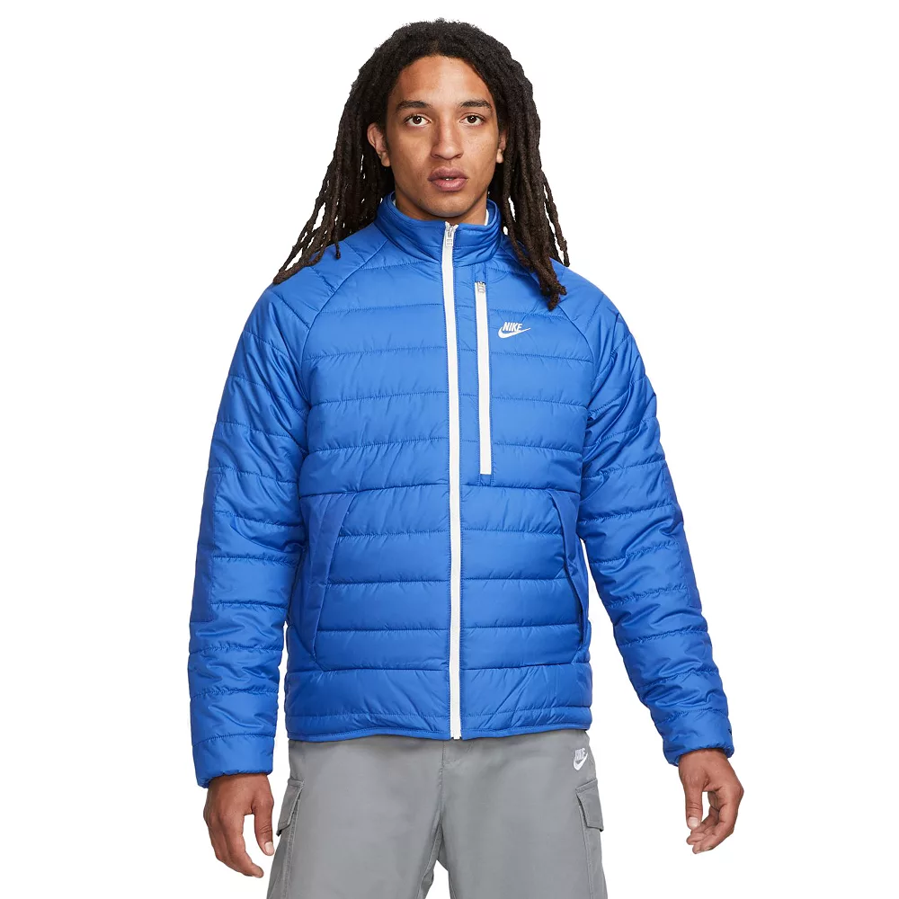 Stay warm and stylish while sporting this men’s Nike Therma-FIT puffer jacket.