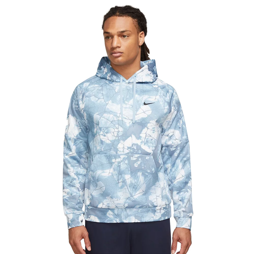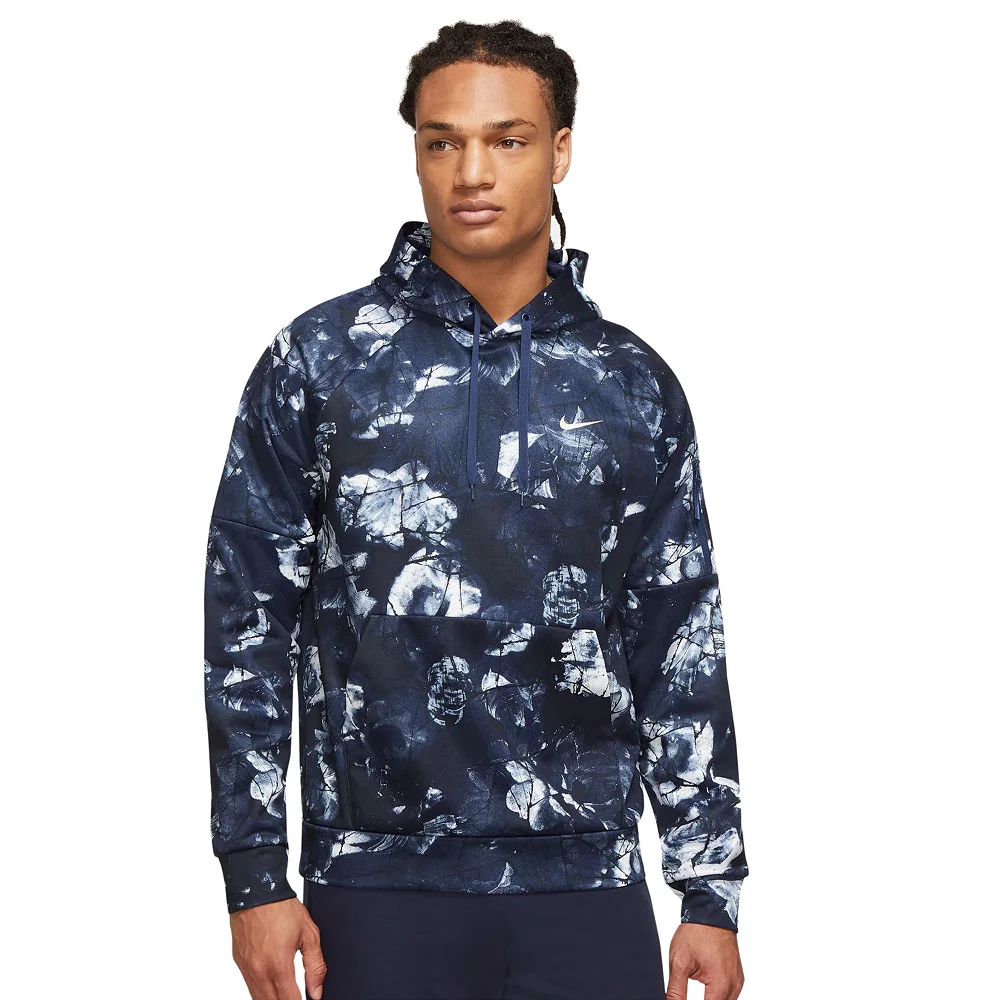 Bring the heat to your cold weather workout. On the Therma-FIT men’s pullover hoodie, supersoft fleece keeps the comfort levels high while you take your exercise routine to the next level. A relaxed feel means you can stretch and bench without anything to hold you back. An allover floral print adds a blast of color to your fitness vibe.
